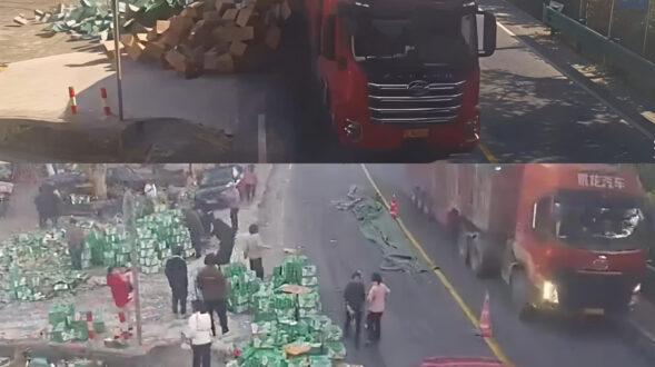De no creer Ruth¡Nadie robó nada! Camión dejó caer miles de bebidas y chinos ayudaron a cargarlas nuevamente