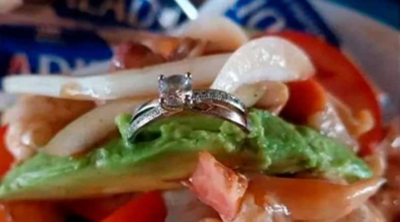 Así, entre el aguacate, tomate y delicioso camarón, se vio el anillo de compromiso, por ende la pareja se viralizó por la pedida de mano, tan poco usual, pero muy llamativa que rápidamente se viralizó.