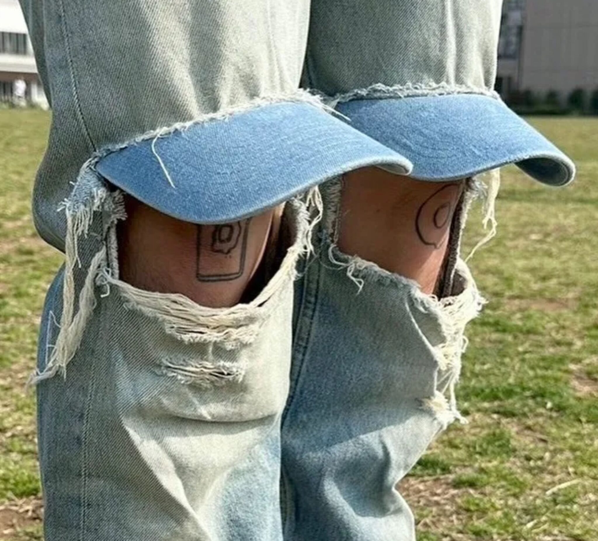 Los pantalones de jean son la prenda más conocida del mundo. Por eso el diseñador japonés Bokunou los transformó en piezas artísticas que juegan con la ilusión óptica. Su colección se llama «Creative Jeans» e incorpora elementos extraños como viseras, fotos y partes de otras prendas para sentar una posición conceptual.