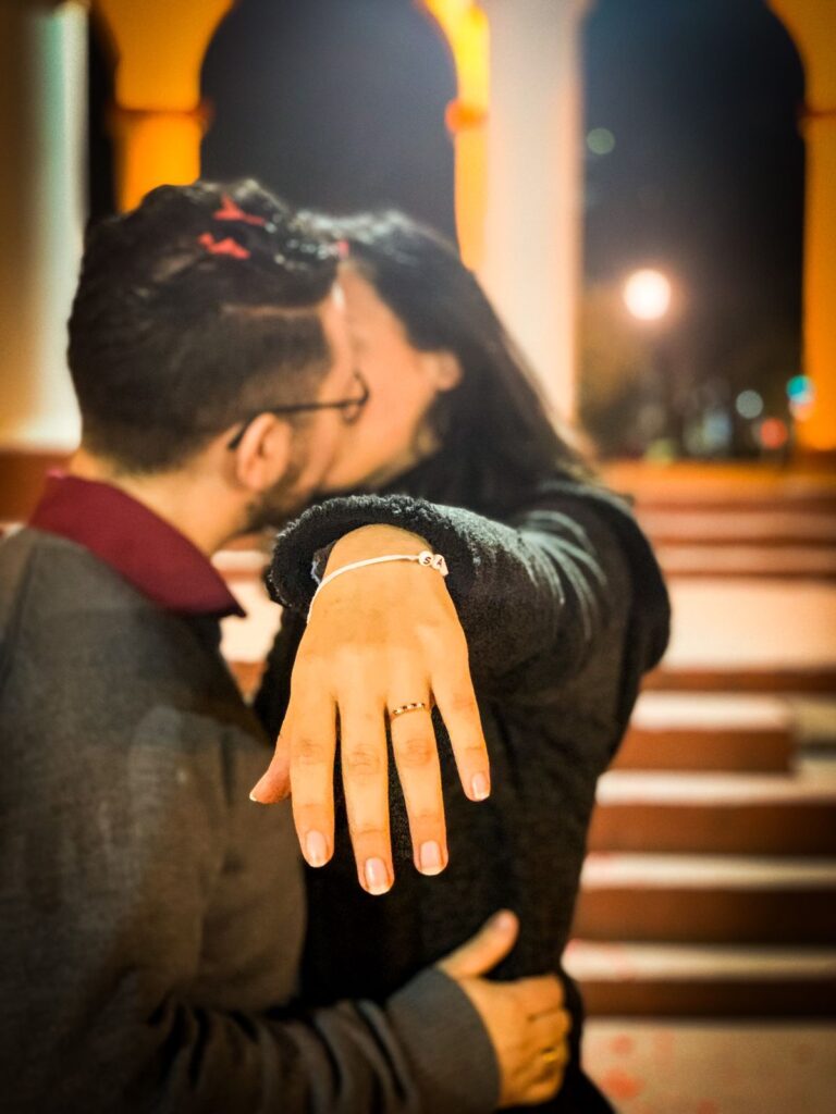 La pareja se sonríe se abrazan y en un momento Johny se arrodilla de su bolsillo saca un anillo y de rodillas ( cómo mandan las costumbres romántica) le solicita su desea casarse con él.