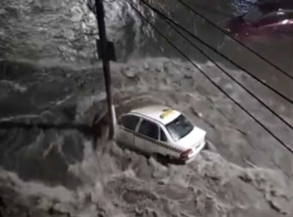 IMPRESIONANTE: UN TAXI QUEDÓ ATRAPADO EN MEDIO DE LA TORMENTA