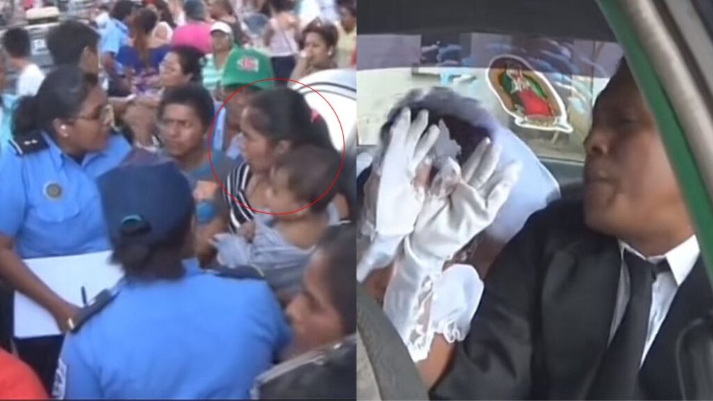 Las imágenes que circulan en redes sociales muestran a Rosa Esperanza Reyes, con su bebé en brazos, mientras intenta interrumpir la boda de su pareja por tres años, que en su momento tenía 40.