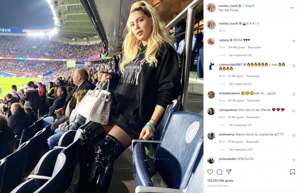 Wanda Nara alentó a Mauro Icardi desde la tribuna.