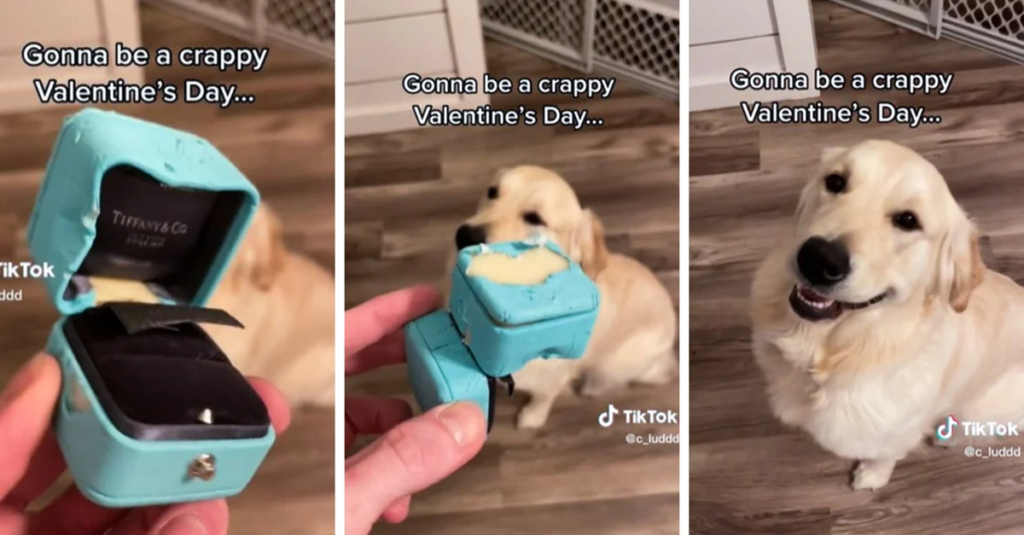 El anillo era parte de una sorpresa romántica del Día de San Valentín, pero nadie contaba que el can se lo comiera.